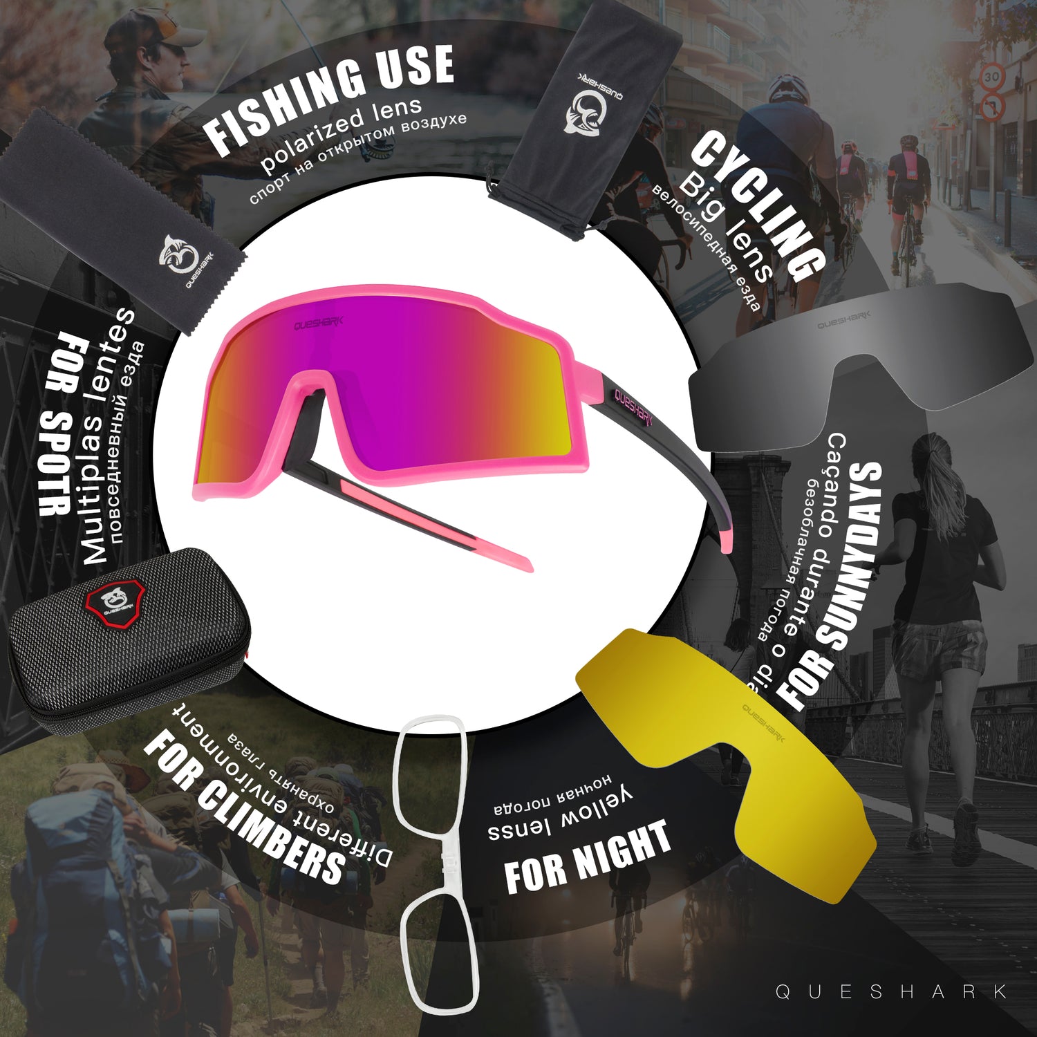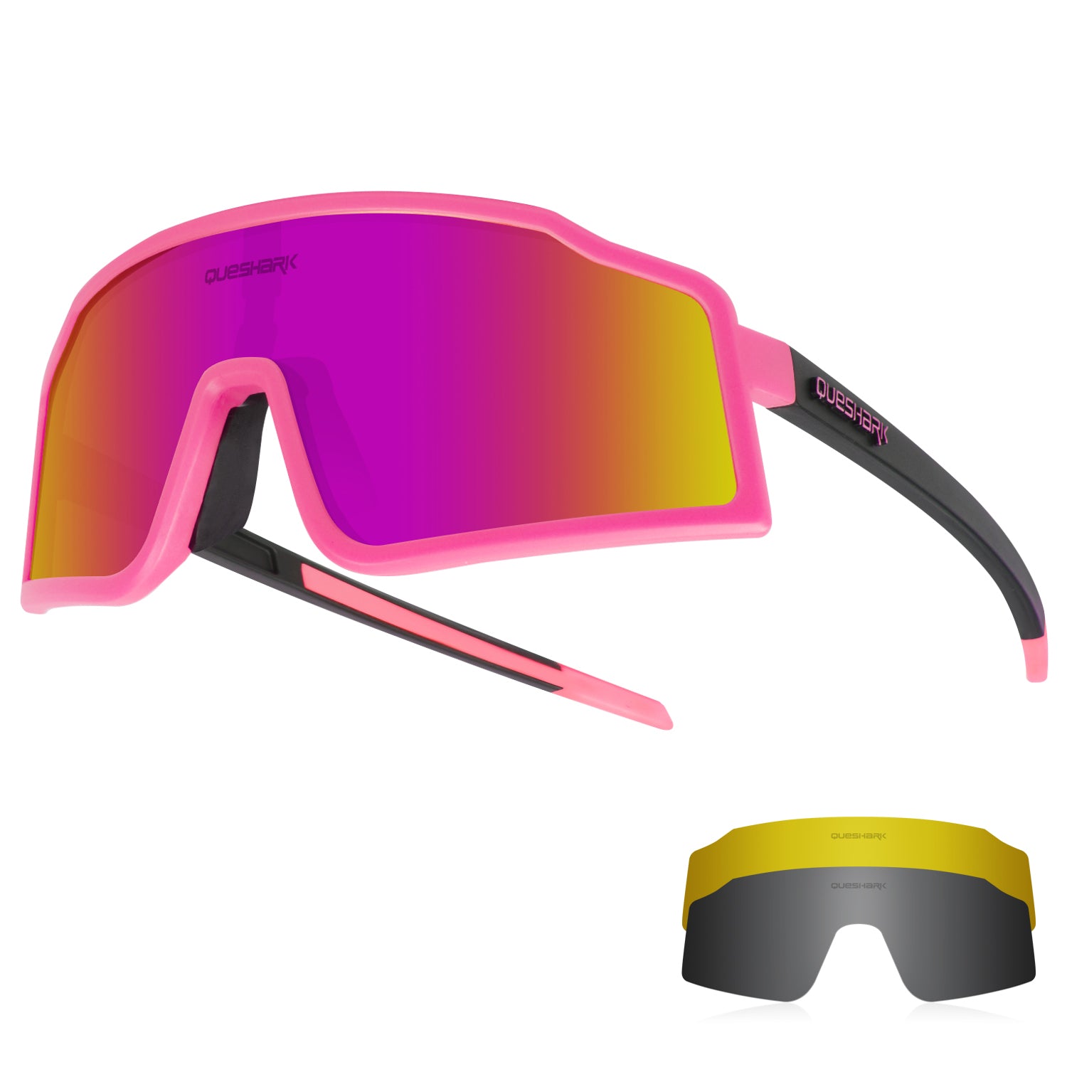 QE54 Pink Sports Glasses Polarized Bicycle Sunglasses Cycling Eyewear 3 Lens/Set