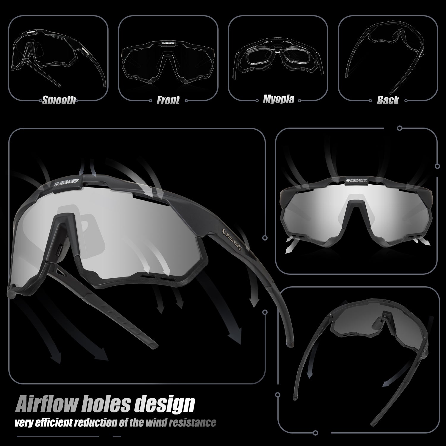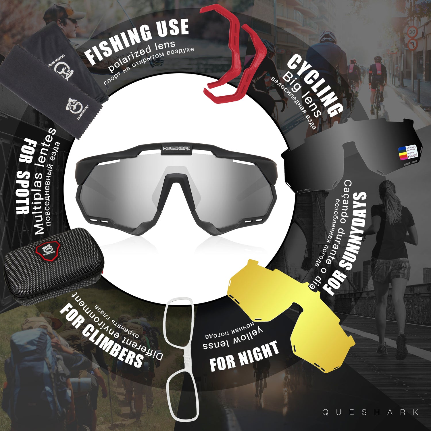QE52 Black Polarized Cycling Glasses Men Women Sport Sunglasses with Replaceable Frame/Lens