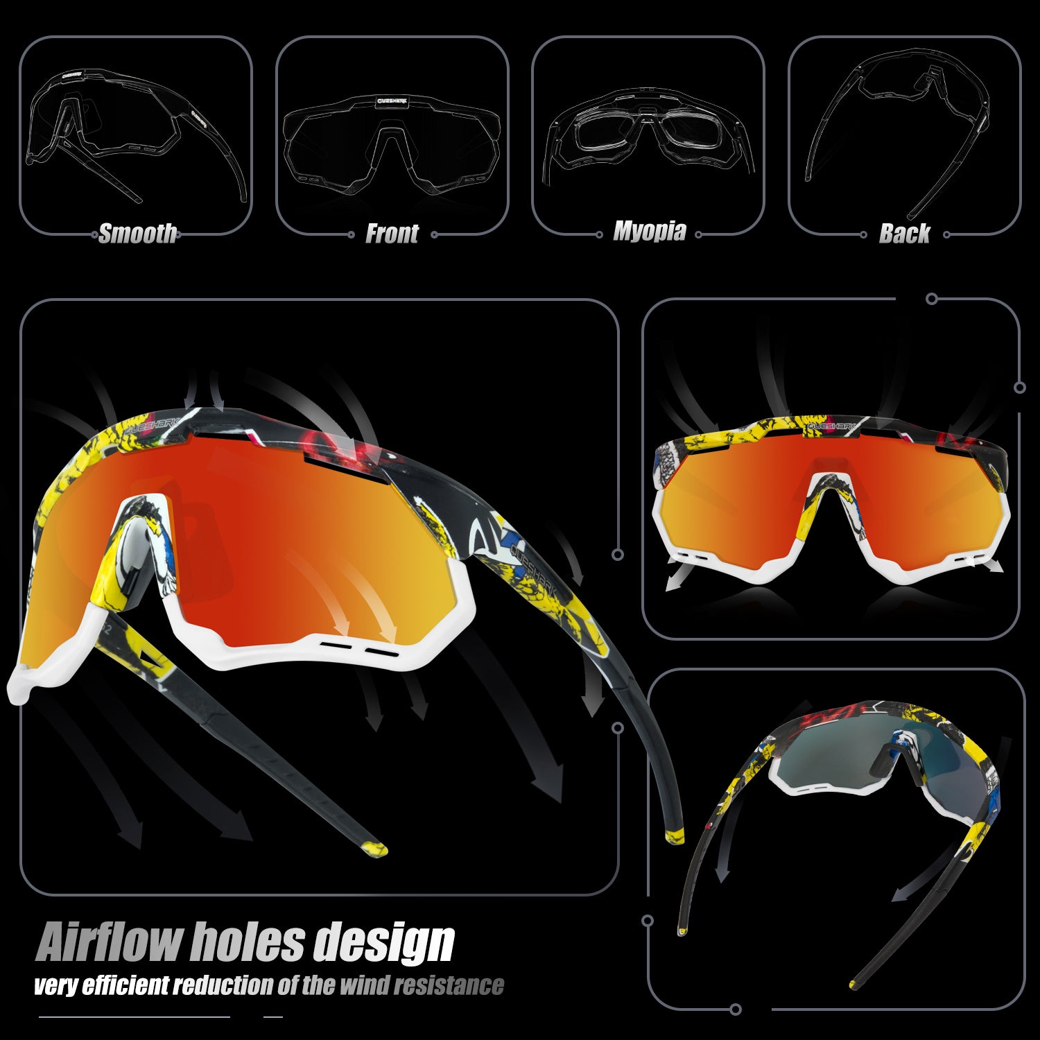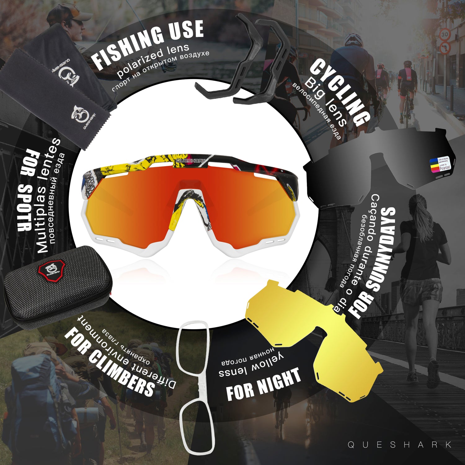 QE52 Camouflage Red Polarized Cycling Glasses Men Women Sport Sunglasses with Replaceable Frame/Lens