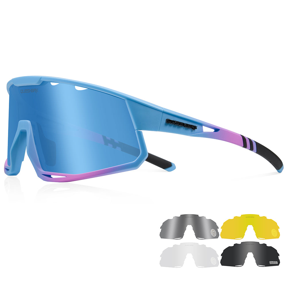 QE56 Blue Pink Polarized Sunglasses Cycling Eyewear Men Women Oversized Driving Glasses with 5 Lens