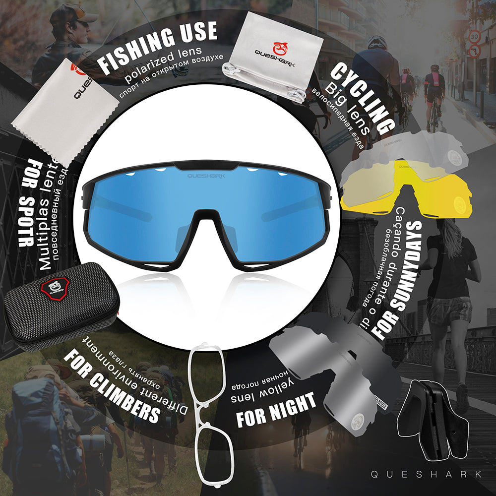 QE56 Blue Polarized Sunglasses Cycling Eyewear Men Women Oversized Driving Glasses with 5 Lens